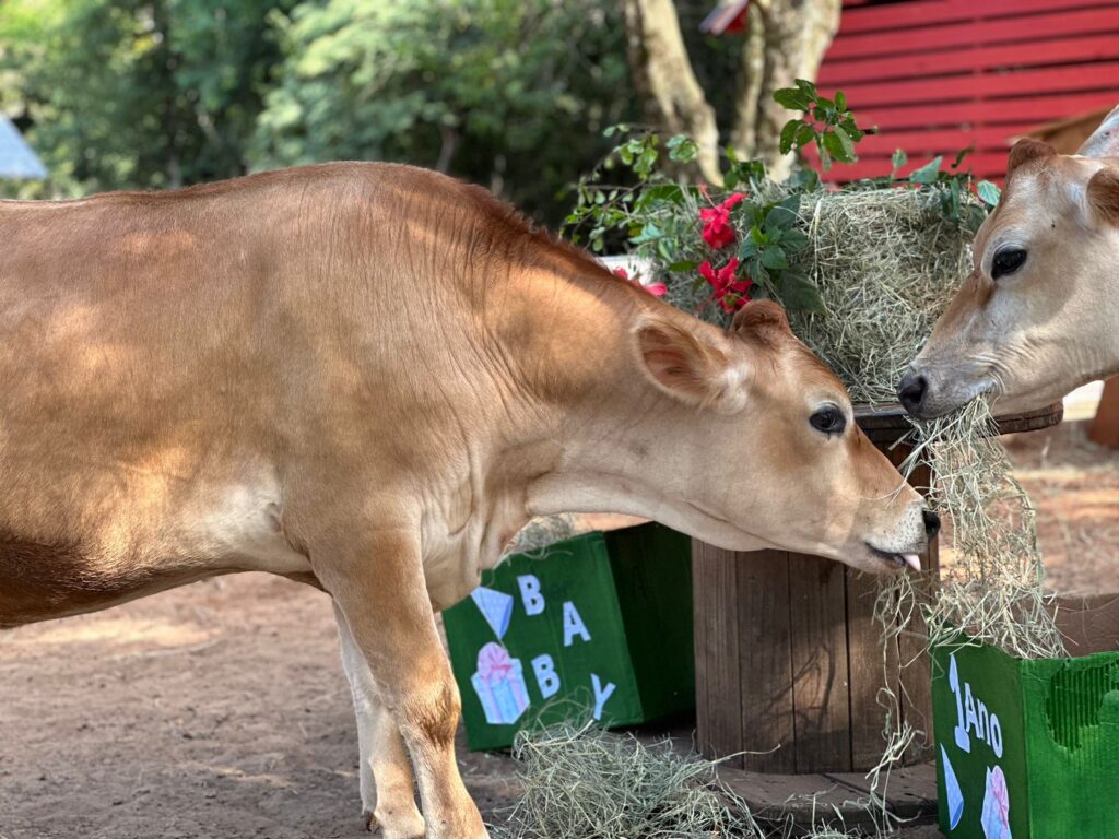 O Foz Eco Park Zoo celebrou nessa sexta-feira (9) o aniversário de 1 ano do boizinho Baby, primeiro animal nascido