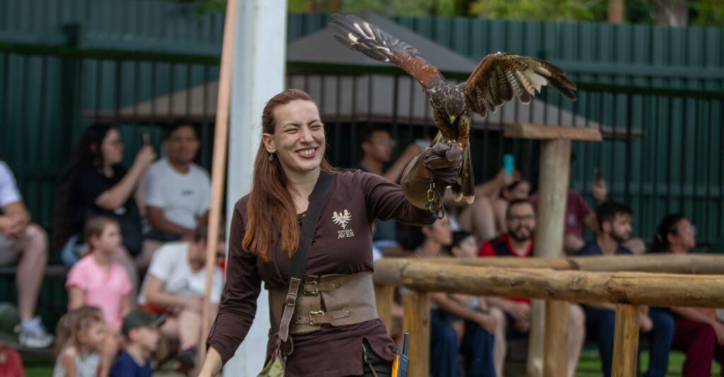 O único Centro de Falcoaria traz o voo das aves de rapina em horários definidos, unindo condicionamento de voo com educação ambiental e a tradição da falcoaria clássica reconhecida pela UNESCO. - Programação ideal para famílias com crianças em Foz do Iguaçu: unindo educação, conservação e respeito à natureza
